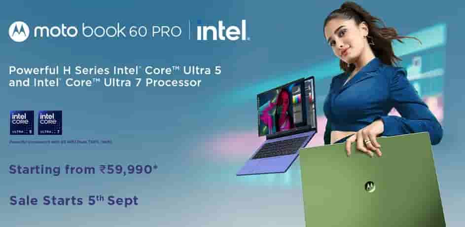 [Update: Sales starts from September 5th] Moto Book 60 Pro with 14″ 2.8K OLED Display, Intel Core Ultra 5/7, and MIL-STD-810H Durability Launching in India on September 6 via Flipkart
