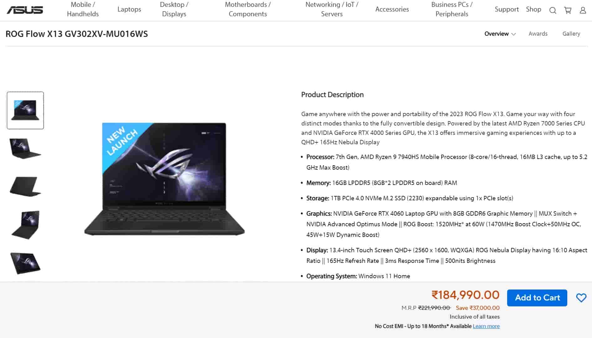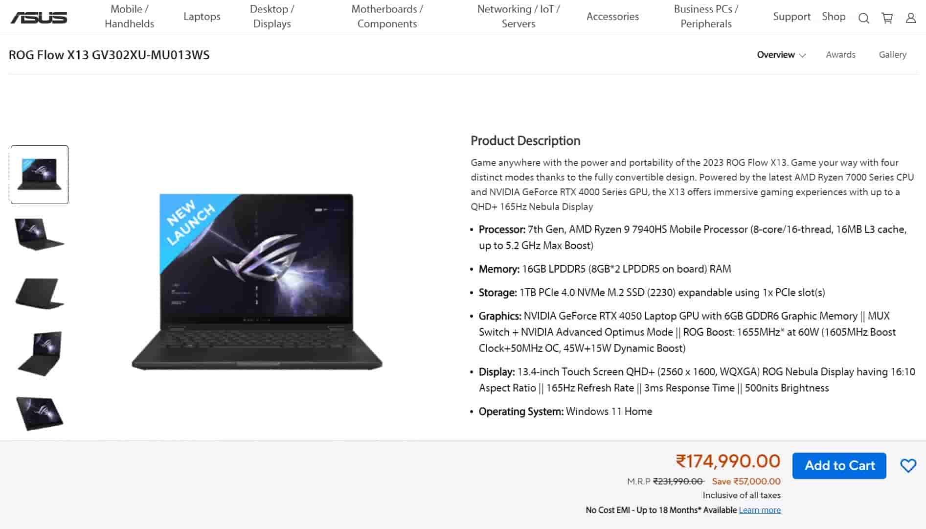 About their price points, the ROG Flow X13 GV302XU-MU013WS model has a price tag of Rs. 1,74,990(actual list price – Rs. 2,31,990), whereas the ROG Flow X13 GV302XV-MU016WS is priced Rs. 1,84,990(actual list price – Rs. 2,21,990).