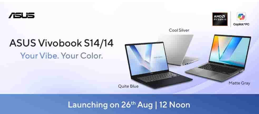 The new ASUS Vivobook S14/14 will be launching in the Indian market on 26th August at 12 PM. The devices will be available in Cool Silver, Quite Blue, and Matte gray color options.