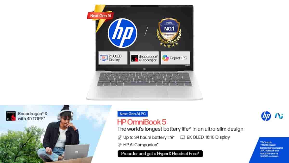 HP’s new OmniBook 5 laptop which will be powered by the Qualcomm Snapdragon X processor will be released in the Indian market on the 30th of June 2025 and as mentioned, the pre-order for this device is now live on the Amazon India shopping platform. Interested Indian customers can get it in 16GB/512GB and 16GB/1TB storage options at respective prices of INR 70,990 and INR 74,990 (15% discounted pricing, actual list price – INR 83,704 and INR 88,225). Bank discounts, standard/no cost EMI, cashback, exchange benefits, and partner offers are also available with the device. Notably, customers pre-booking the device will get a HyperX headset absolutely free of cost.