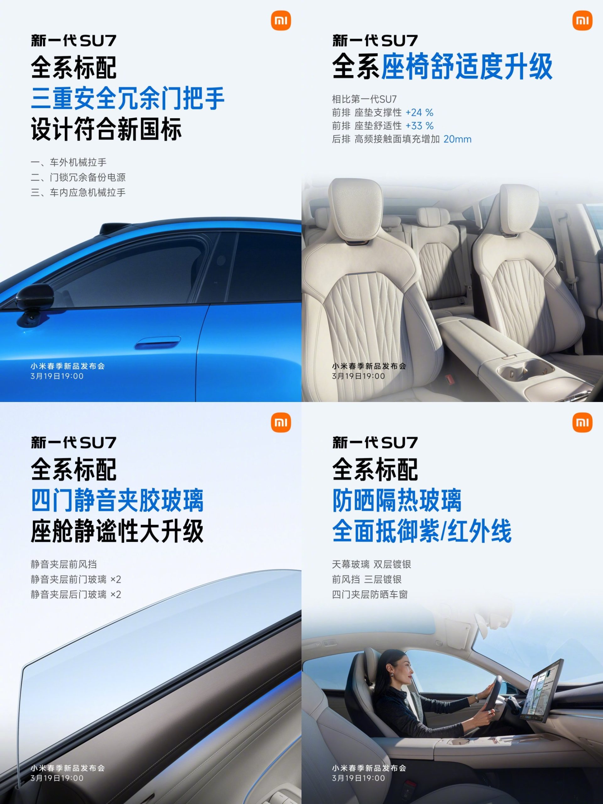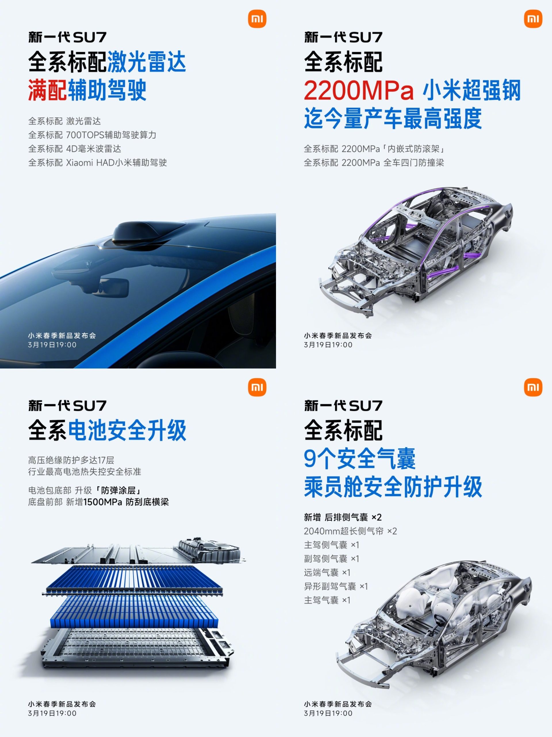 The battery safety upgrade is also available for the new generation SU7: high-voltage insulation protection with up to 17 layers, the bottom of the battery pack has been upgraded with a bulletproof coating, and a new 1500MPa scratch-resistant crossbeam has been added to the front of the chassis.