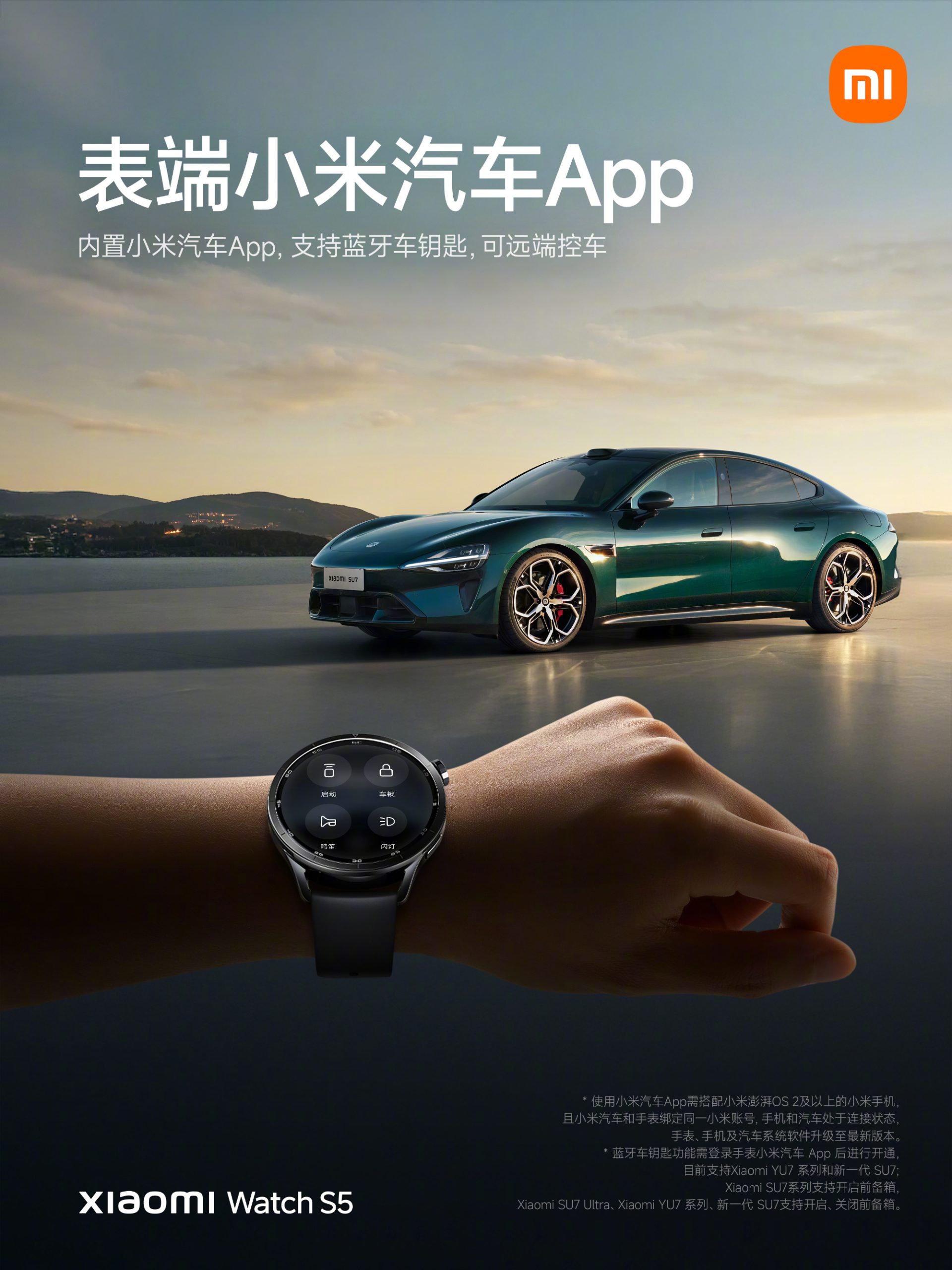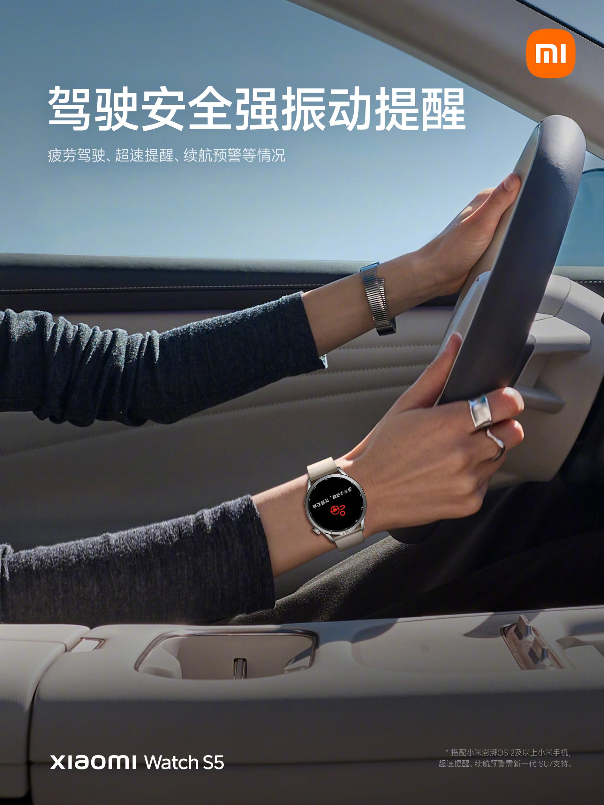 The Xiaomi Watch S5 can be deeply integrated with Xiaomi Auto and act as a wrist control center with features like navigation route reminder (system is linked to the car’s navigation system, providing vibration alerts at key points like when the traffic light turns green or when approaching a toll station), strong vibration reminder for driving safely (fatigue driving warning, speeding warning, and battery level warning) and support for the new generation SU7 and YU7 via the Xiaomi Auto app is also available. A new Xiaomi Smart Lock integration function has also been added, displaying the door lock camera feed and supporting quick answering and replying.