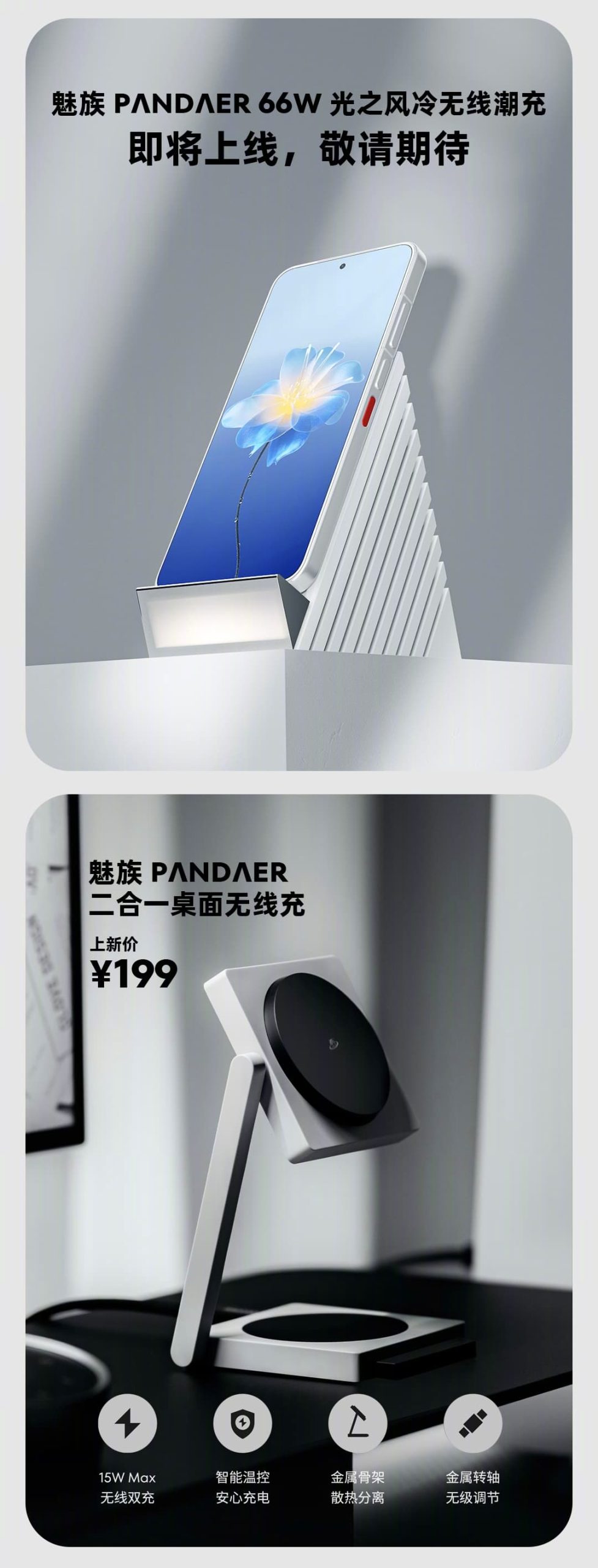 A PANDAER 66W Light Air Cooled Wireless Charger will be made available soon, while the PANDAER 2-in-1 Desktop Wireless Charger is available for CNY 199. To add, the PANDAER 2-in-1 Desktop Wireless Charger supports 15W wireless charging intelligent temperature control, along with features like safe charging, metal frame, heat dissipation separation, metal hinge, and step-less adjustment.