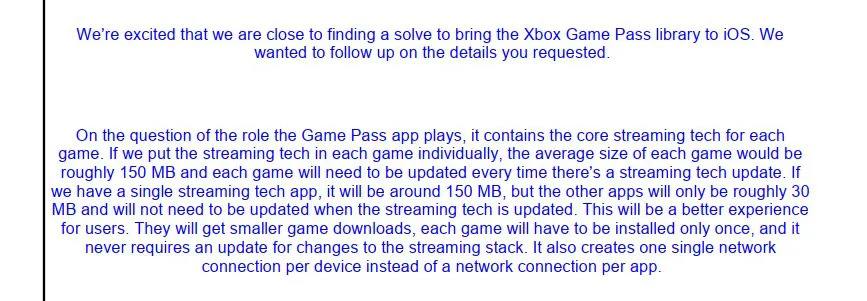 “Having access to these exclusive AAA titles in addition to the Game Pass games would be a really exciting possibility for iOS customers,” she said.