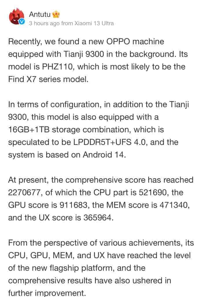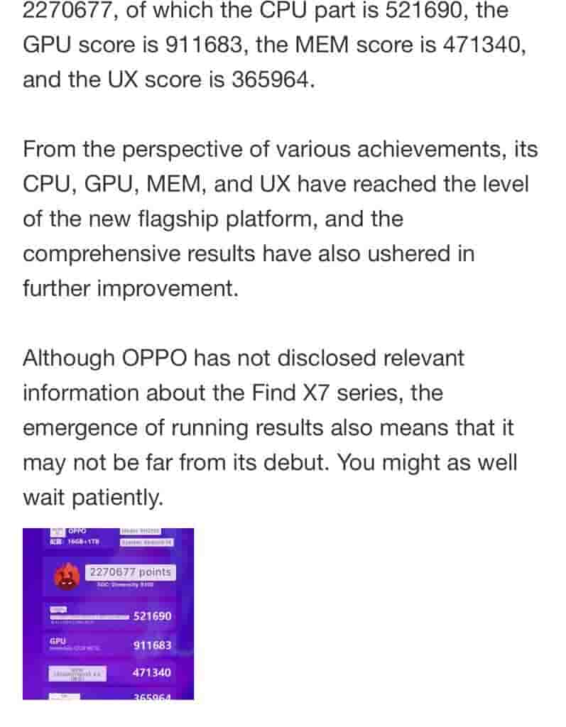 Alleged OPPO Find X7 Spotted on the AnTuTu Benchmark Platform: Might Launch Soon