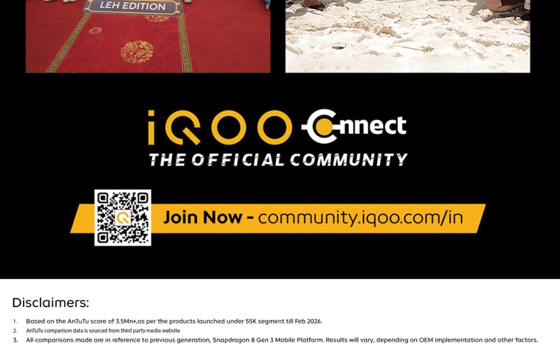According to the microsite, the iQOO 15R will be powered by the Snapdragon 8 Gen 5 SoC, based on TSMC’s 3nm process technology. The company claims flagship-level performance and positions the smartphone as the fastest in its segment. The page also reveals that the device has achieved an AnTuTu score of 3.5 million plus, with iQOO noting that this figure applies to products launched under the ₹55,000 segment up to February 2026, which suggests that the smartphone could be positioned in the sub-₹55,000 price bracket.