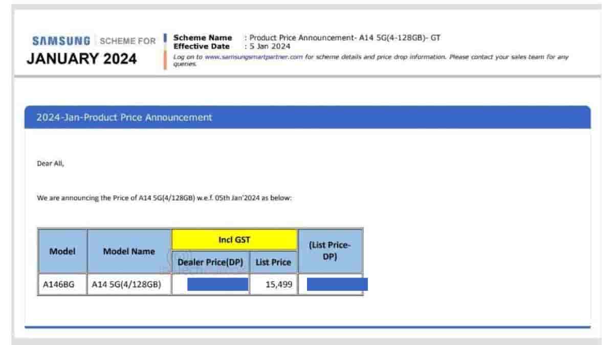 [Exclusive] Samsung Galaxy A14 5G New 4GB/128GB Model Announced for India