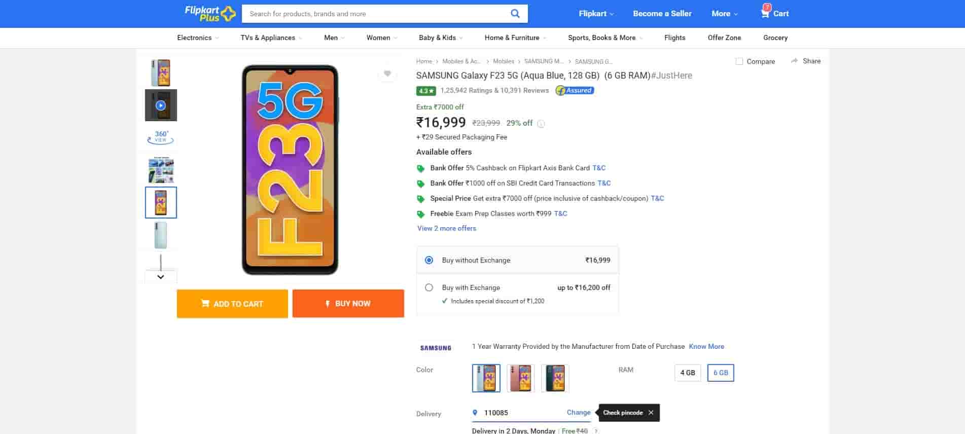 Samsung Galaxy F23 5G (6GB/128GB) is available at a price of ₹16,999 on Flipkart with a discount of 29%. The purchase will save you a sum of ₹7000 and that looks like just the kind of thing we want in this costly world.