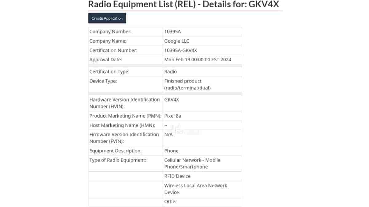 Well, thanks to my instinctive search, I have spotted the Google Pixel 8a smartphone on the Canadian REL certification website with certification number 10395A-GKV4X and model number GKV4X.