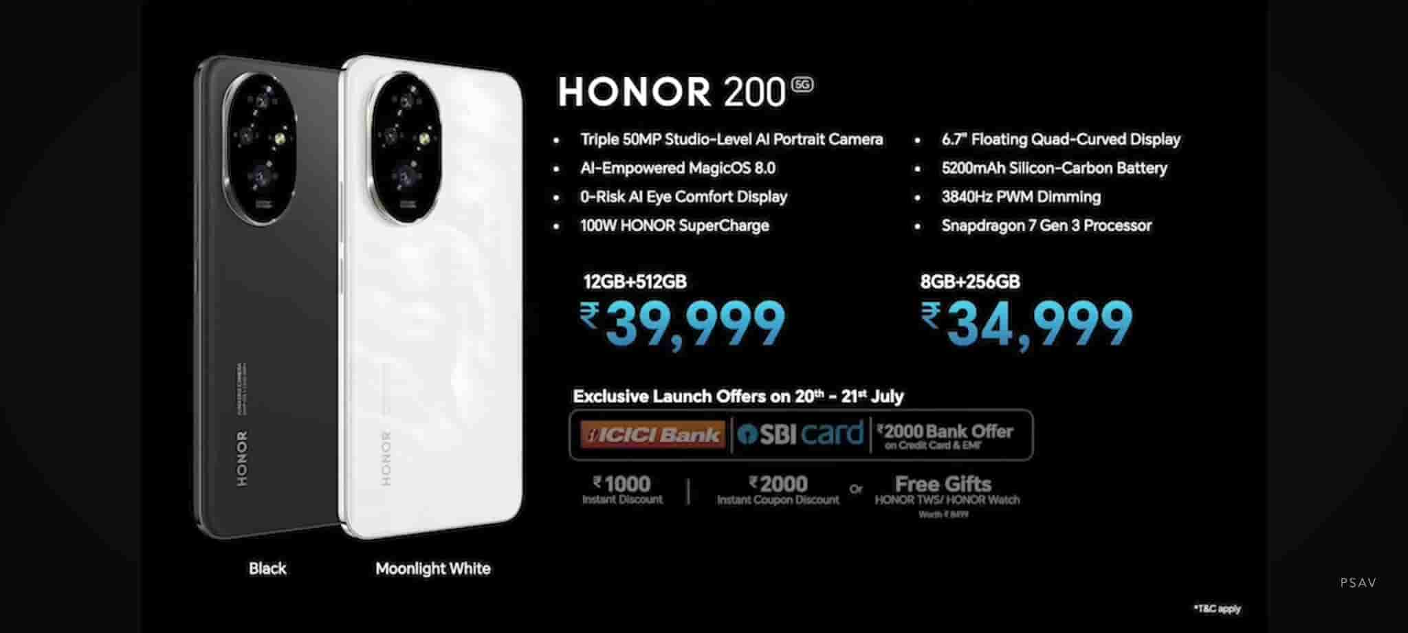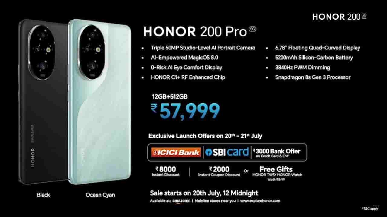 Honor 200 5G comes in Moonlight White and Black color options while Honor 200 Pro 5G comes in Ocean Cyan and Black color options. Honor 200 5G is available in two storage options- 8GB/256GB priced at Rs.34,999 and 12GB/512GB priced at Rs.39,999. On the other hand, Honor 200 Pro 5G comes in a single storage option of 12GB/512GB priced at Rs.57,999.