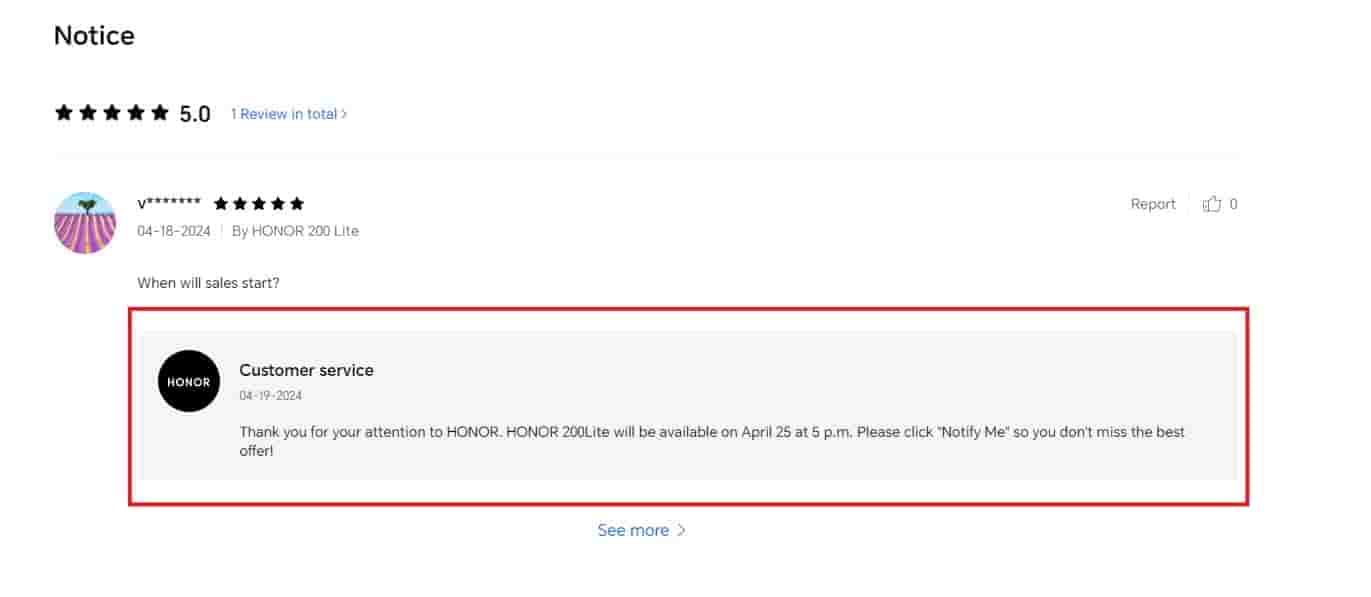 Also, on the product listing page, Honor customer care executive has also confirmed that the sales will also start on the same day of the launch.
