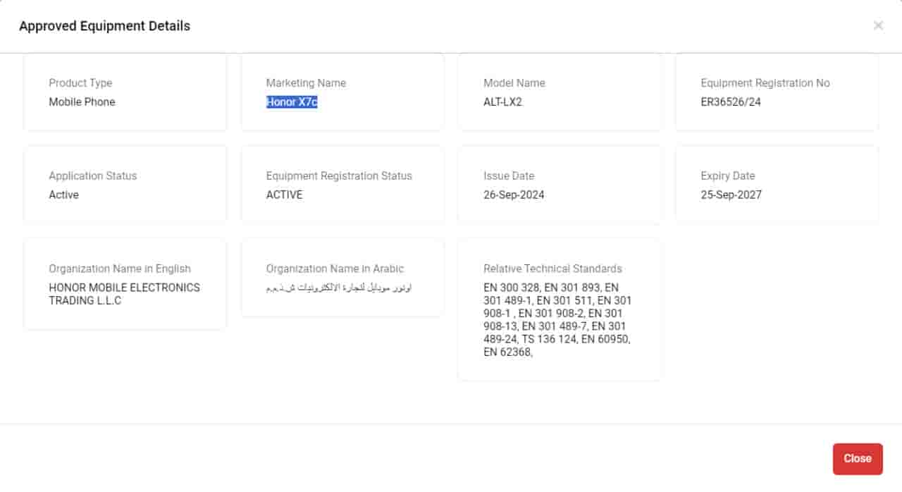 Honor has launched a new smartphone “Honor 200 Smart” adding to the Honor 200 Series which already includes the Honor 200, Honor 200 Pro, and Honor 200 Lite. This has been released in the EU region currently And will probably be launched in other regions as Honor X7c. We earlier reported its sighting on the GCF certification which also showed both smartphones will share the same model number “ALT-NX1”. Not just this, we have again spotted the Honor X7c on the TDRA certification with a different model number “ALT-LX2”. Other than the model number it doesn’t reveal the specs, it could be another variant of this smartphone since the model number differs from earlier certifications.