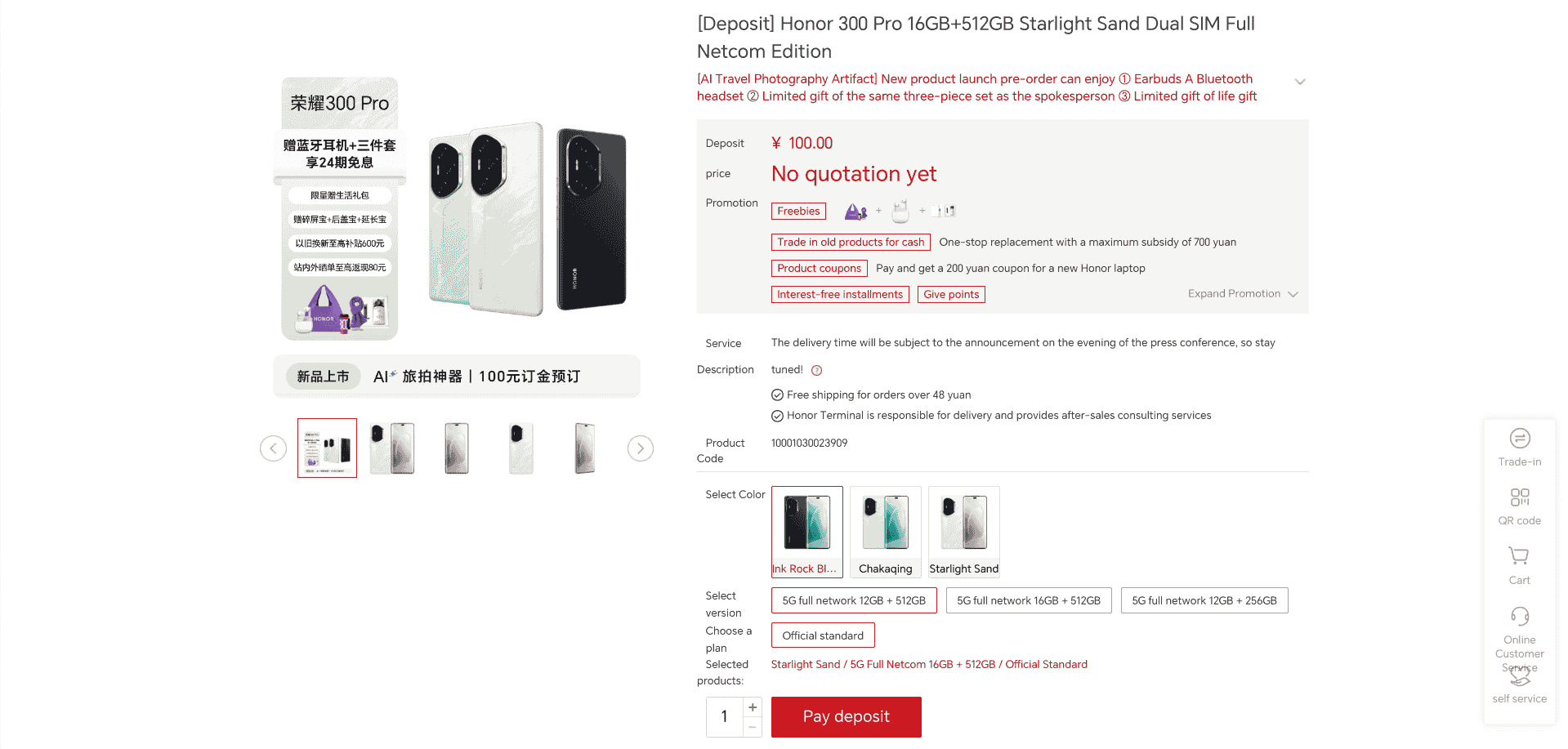 Honor 300 Series Pre-Reservation Begins in China: 300 and 300 Pro Models Listed on Official Website