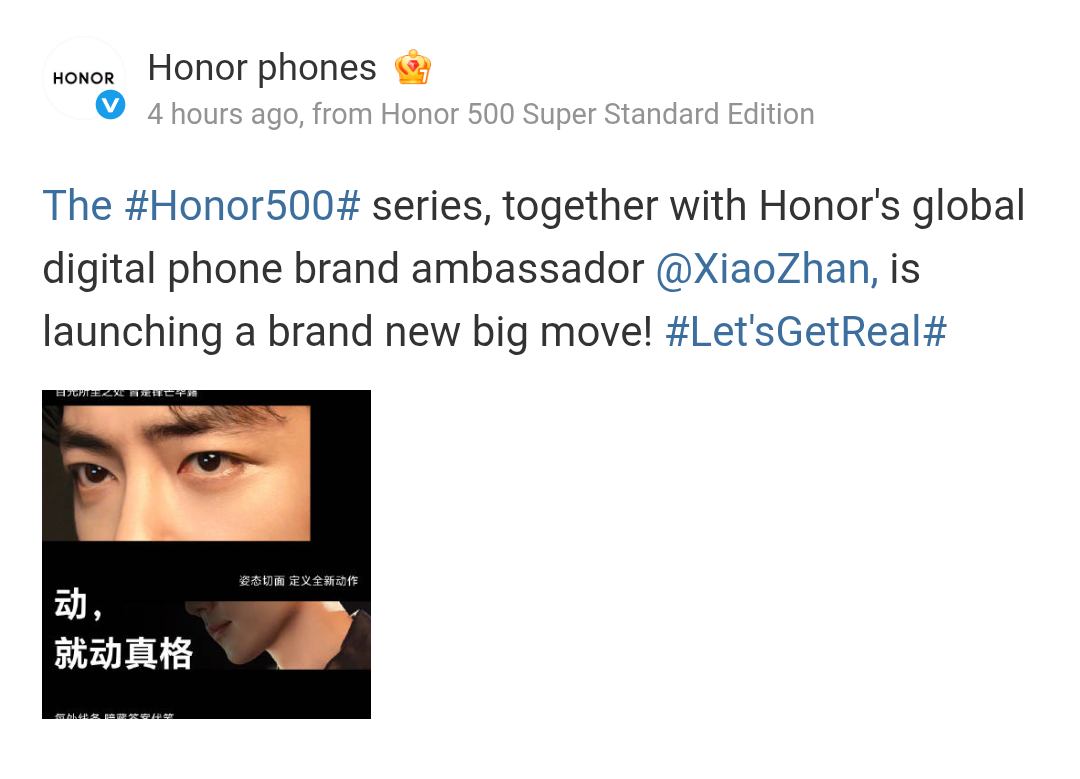 In the Chinese market, the next Honor 500 series smartphones have now been officially teased. Moreover, Xiao Zhan will be joining hands together with the brand for unveiling these latest devices.