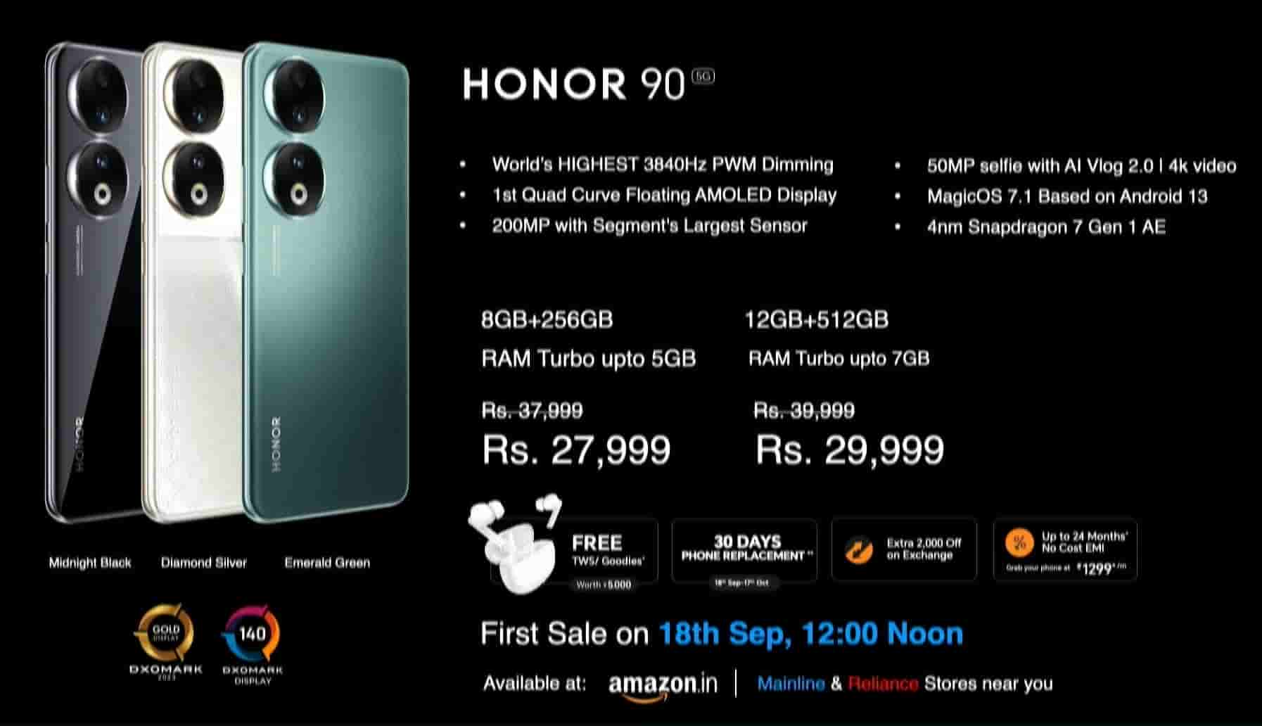 Honor 90 5G launched officially in India today, first sale to start from September 18th : Check the specs, pricing and availability
