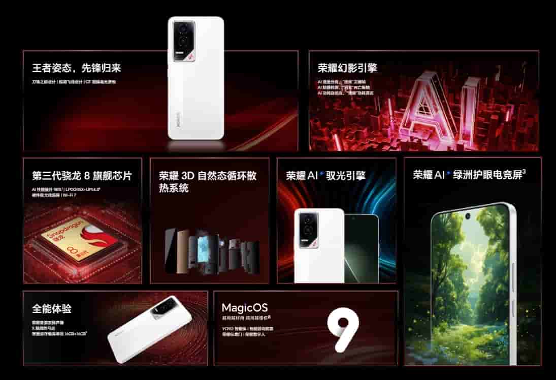 The HONOR GT runs on MagicOS 9.0, based on Android 15, and includes features such as YOYO Intelligent Body, game management tools, multitasking capabilities through Honor Anywhere Door, and Digital Human AI support. The Glory Phantom Engine further optimises AI rendering, display separation, and power consumption.