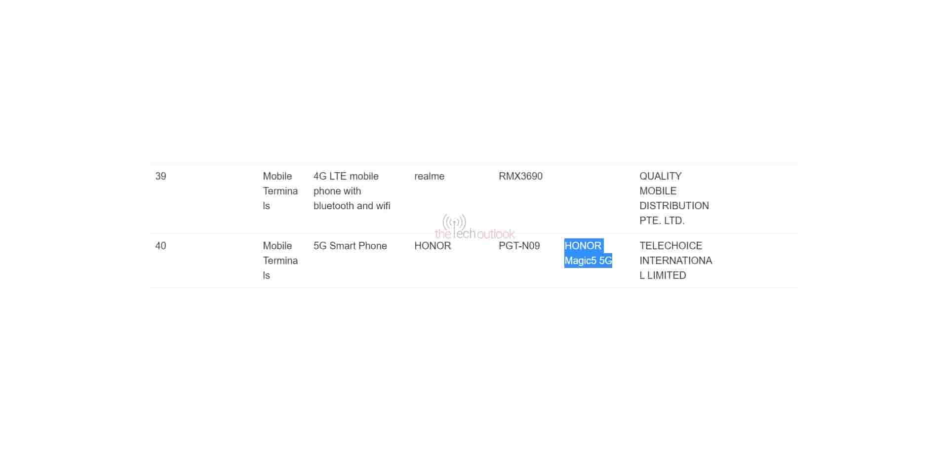 Honor Magic 5 5G listed on IMDA certification website, might soon launch in global markets