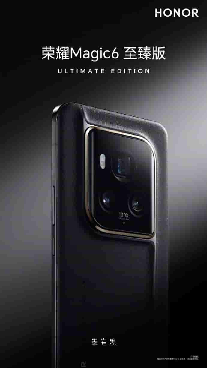 Recently the poster image of Honor Magic 6 Ultimate Edition was revealed officially that showcased a unique square-shaped projected camera module with golden-colored highlighting around it. The device also features a leather rear panel, with the volume rocker and the power button on the right-side panel.