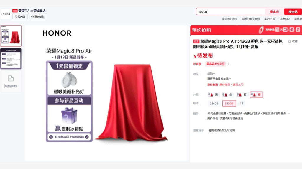 Honor Magic 8 Pro Air confirmed to launch in China on 19th January; Colour and Storage options revealed via JD.com
