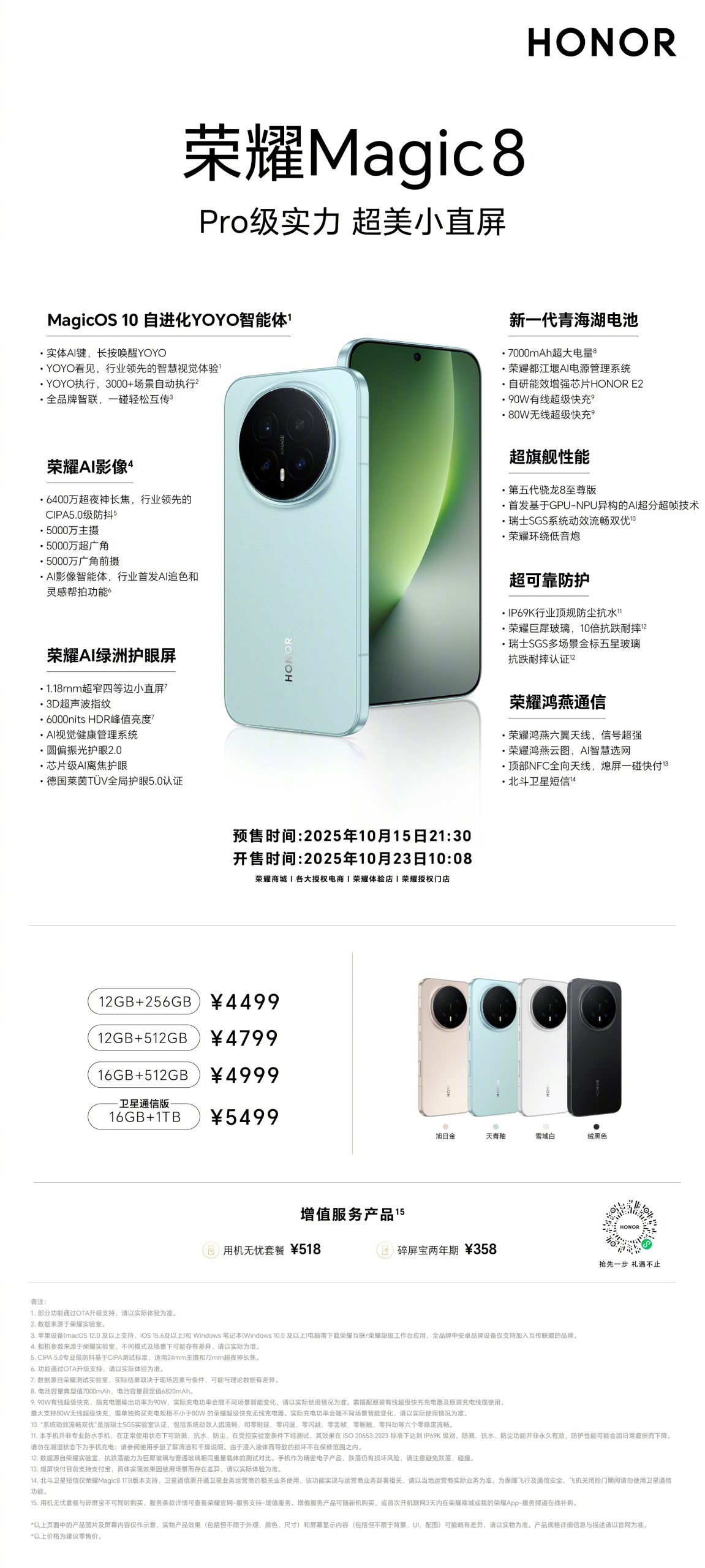 Honor Magic 8 features a 6.58-inch LTPO quad curved display that offers 1.5K screen resolution, 120Hz refresh rate, up to 6000 nits peak brightness, and 4320Hz high-frequency PWM Dimming. It is equipped with a 64MP telephoto camera. It is backed by a 7000 mAh battery and supports 90W wired SuperCharge and 80W wireless charging.