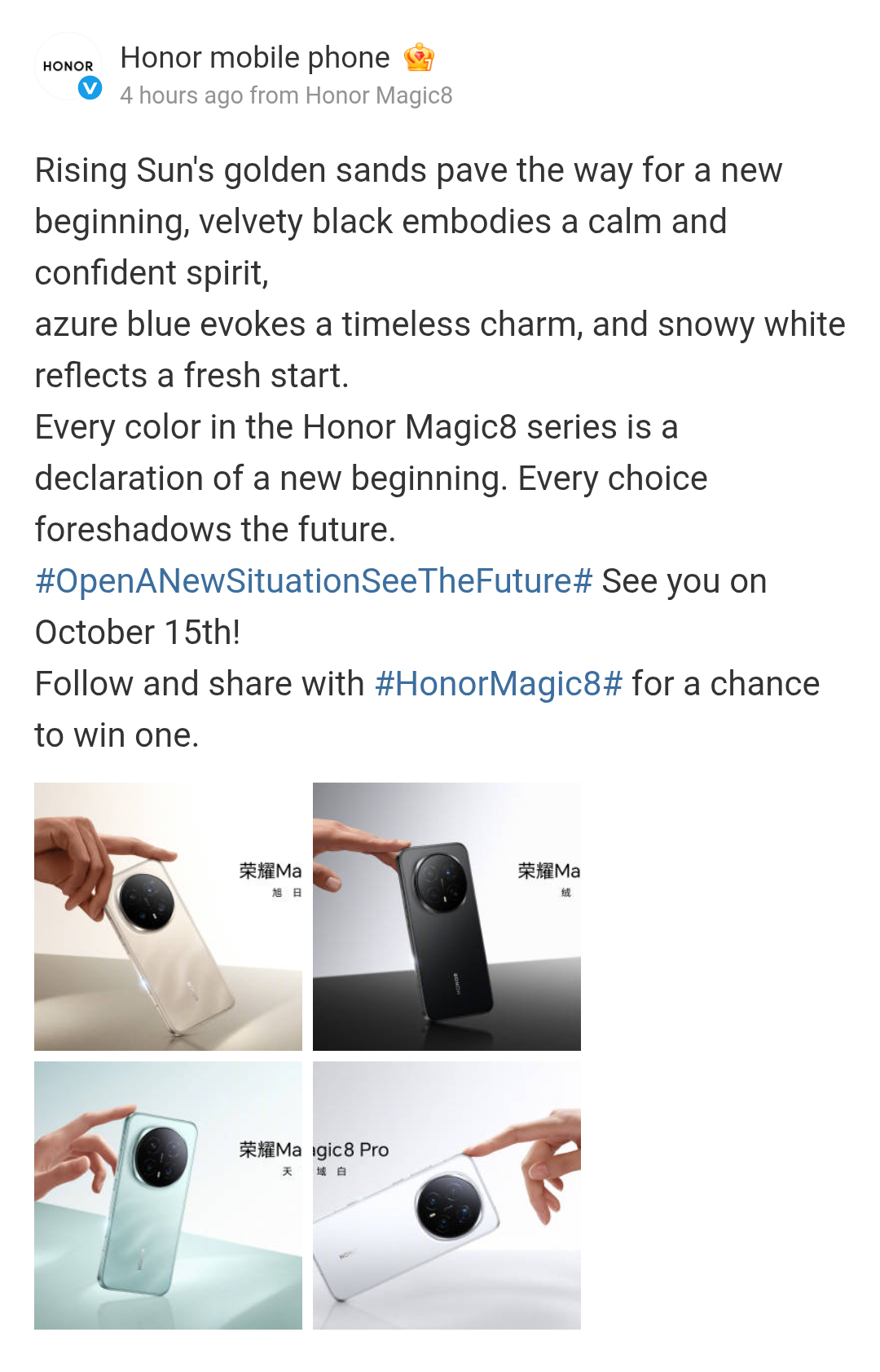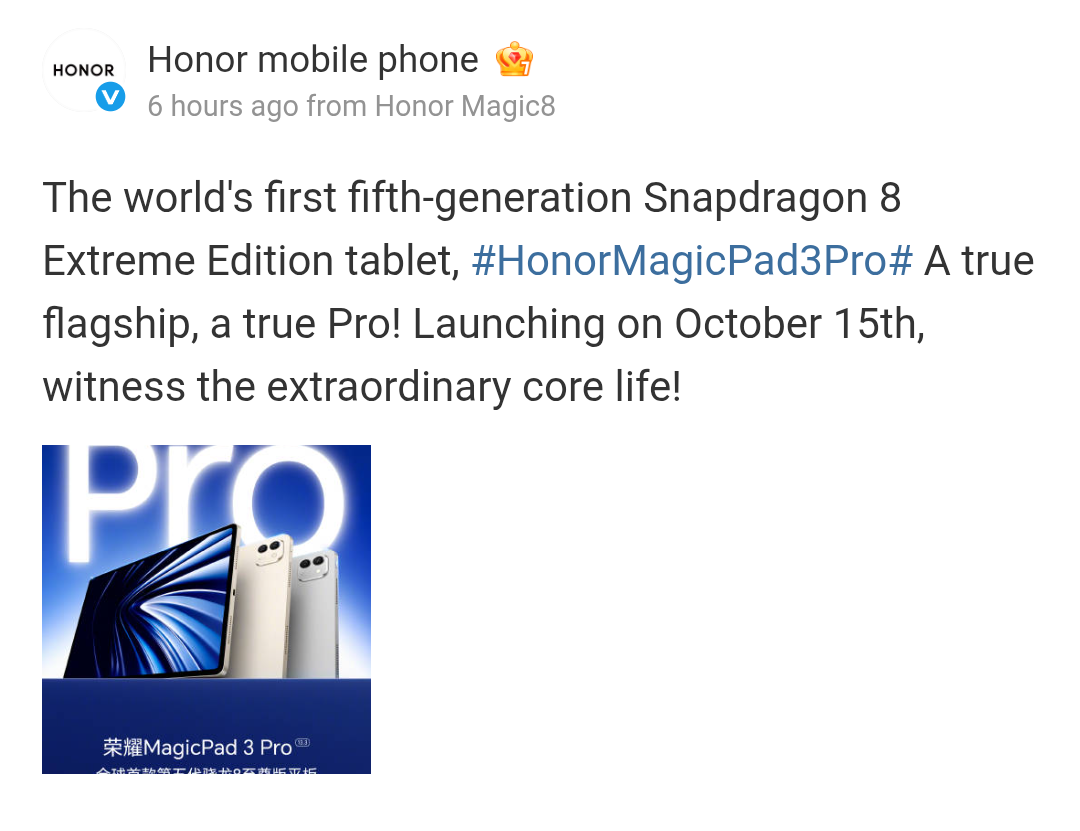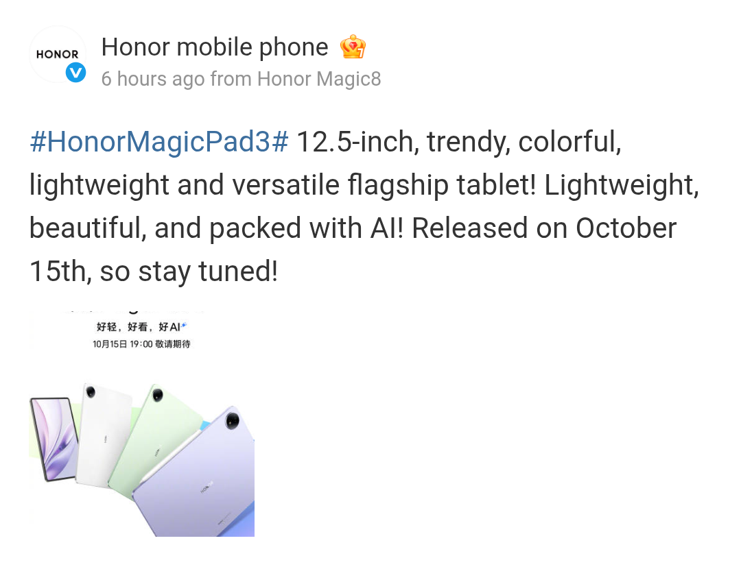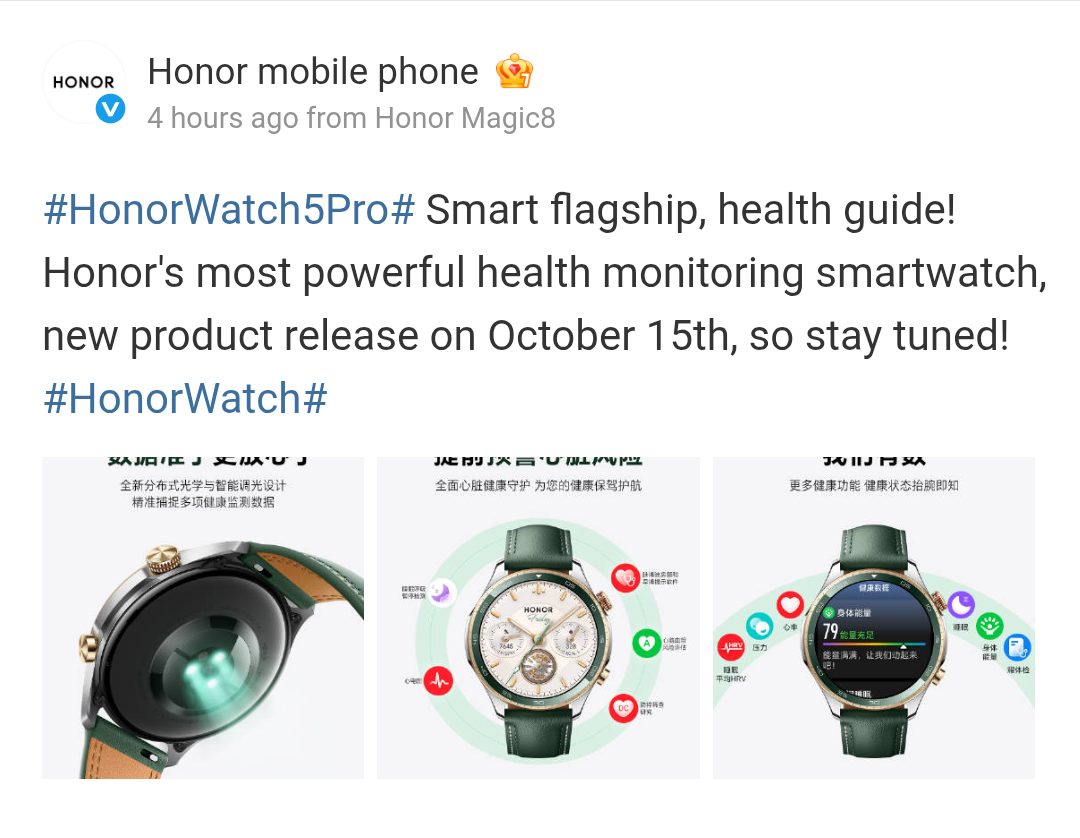 Honor Magic 8 Series, MagicPad 3, MagicPad 3 Pro, Watch 5 Pro, and Earbuds 4 Announced to Launch on 15th October 2025 in China: Key Specs Also Teased