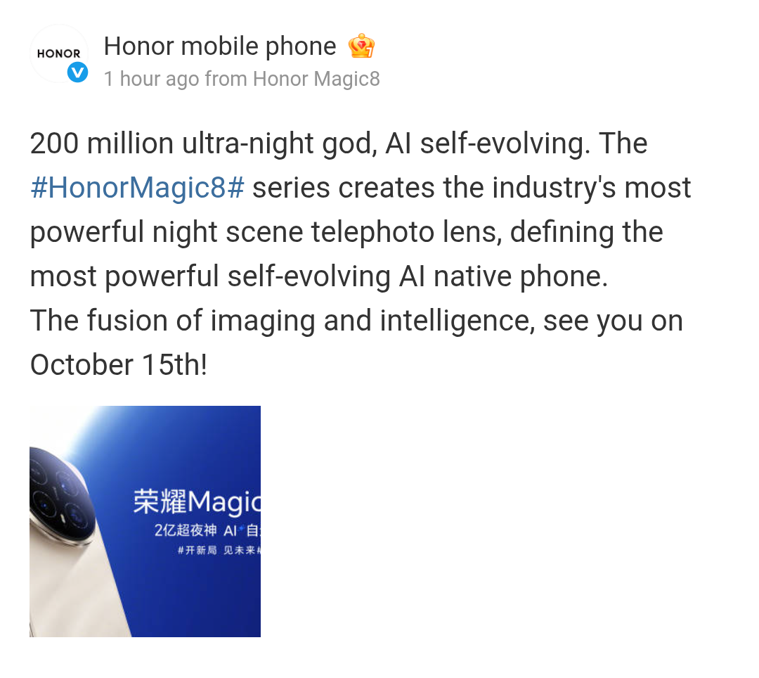 Honor’s Next Major Product Launch Event Scheduled for 15th October 2025