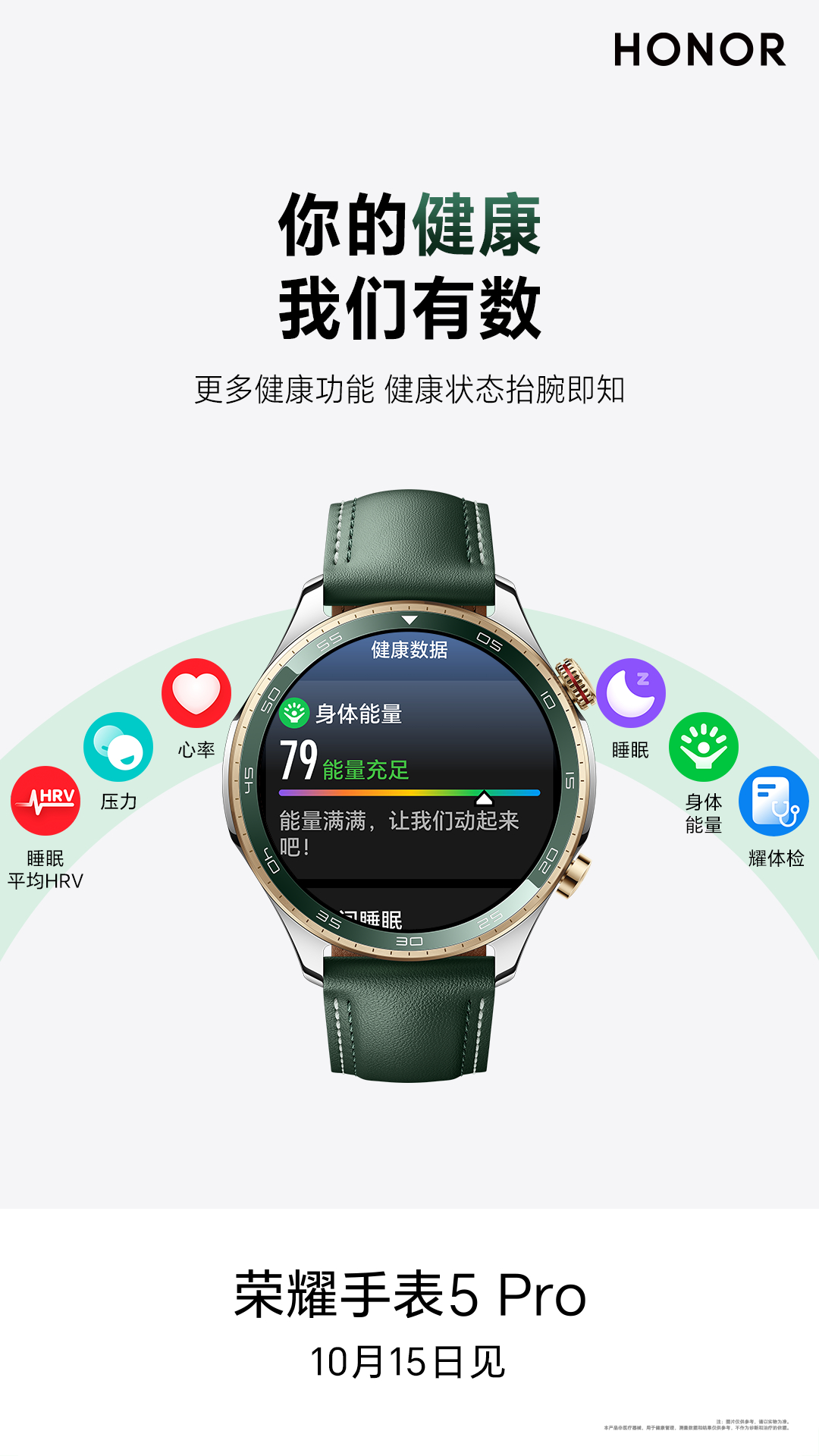 About Honor’s Watch 5 Pro, it has a circular dial shape, and is claimed to be the most powerful health monitoring smartwatch. Lingtong Perception System (new distributed optics with intelligent dimming design), 24-hour monitoring for heart risks, and many added health features are part of the device. A Green x Silver color choice can be expected for the device, and it will come with Green leather straps. A rotatable crown and a functional button is also there at the right side.