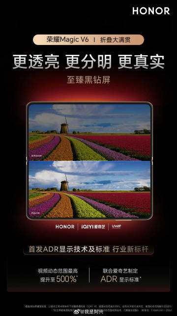 The Honor Magic V6 phone’s ADR Display Technology, co-developed with iQIYI, enhances video dynamic range by up to 500%. The external screen comes with a 1.18mm ultra-narrow bezel and 94.17% screen-to-body ratio.