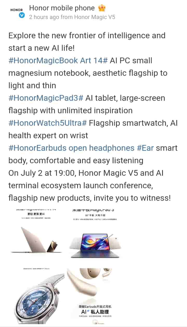 Speaking more, the Honor Magic V5 and AI Terminal Ecosystem Launch Conference which will be unveiling the mentioned devices is scheduled to take place on the 2nd of July 2025 – early next month in China. Also, in the coming days, more teaser updates can be expected, which could be revealing even more details about the latest and upcoming Honor products.