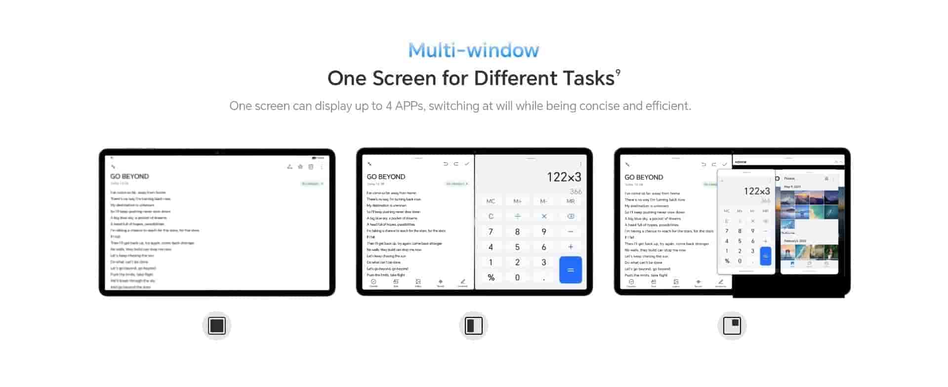 The Honor Pad X9 is multi-window enabled, with up to 4 apps, which would facilitate seamless multitasking purposes.