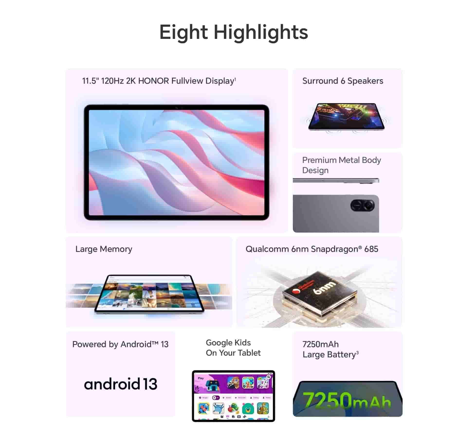 Speaking of the specifications of the Honor Pad X9, it features an 11.5-inch 2K HONOR Fullview Display with a 120 Hz refresh rate. It offers up to 400 nits of maximum brightness.