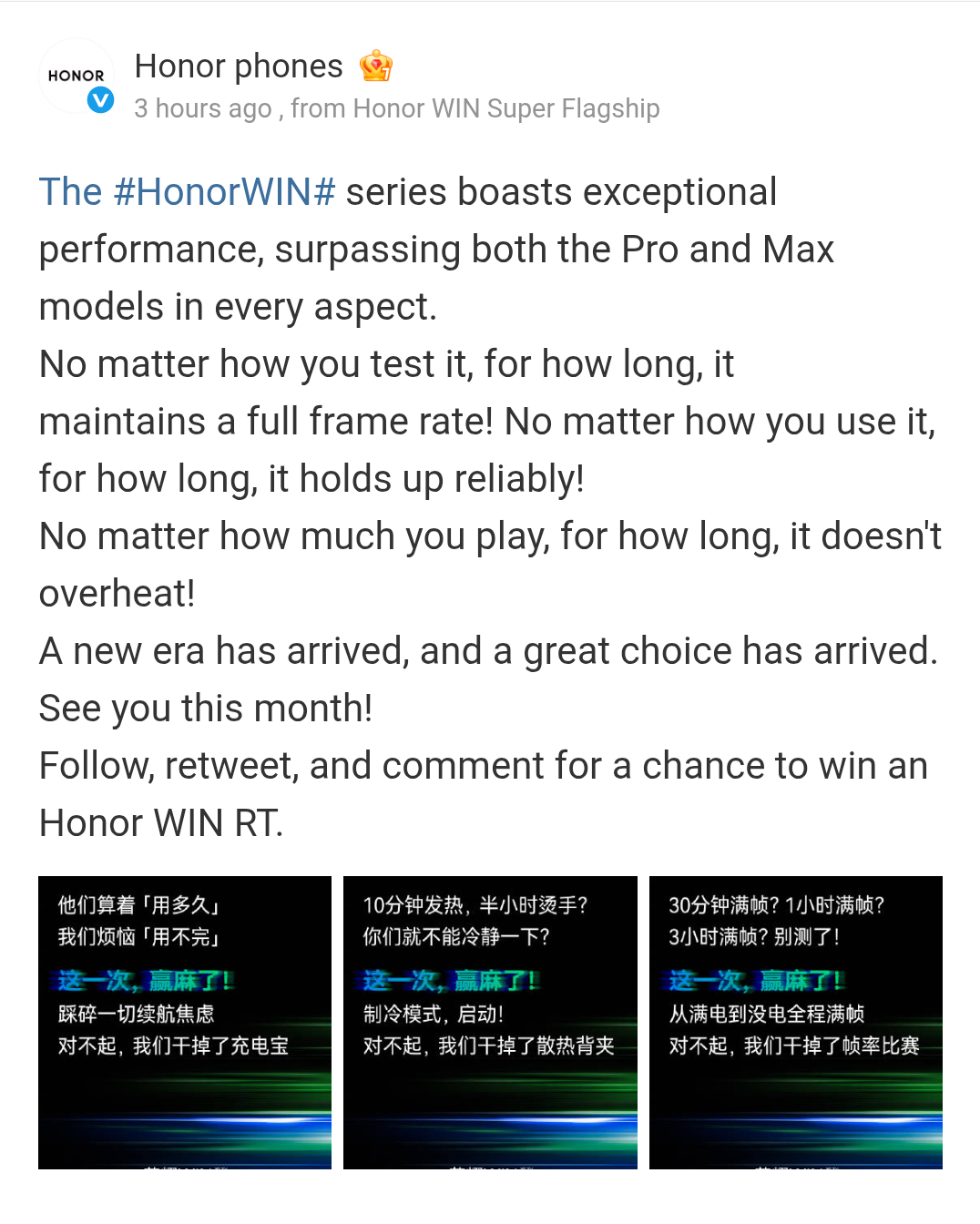 On the performance side, Honor’s Win Series smartphones are claimed to offer longer battery life and to address overheating, a cooling mode has also been introduced. A full frame rate gaming experience has also been teased for the Honor Win Series.