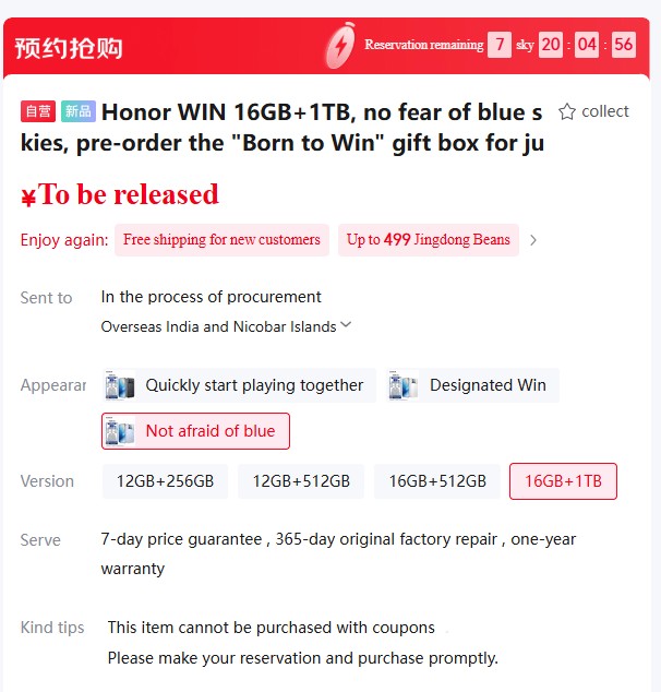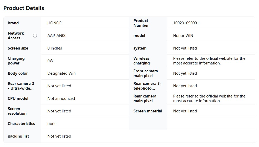 Honor Win Series Memory Options and Model Numbers Revealed on JD.com