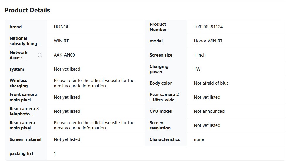 Both the Honor Win and Honor Win RT are listed in three colour options of black, white, and blue. You can also check out our earlier coverage for more details.
