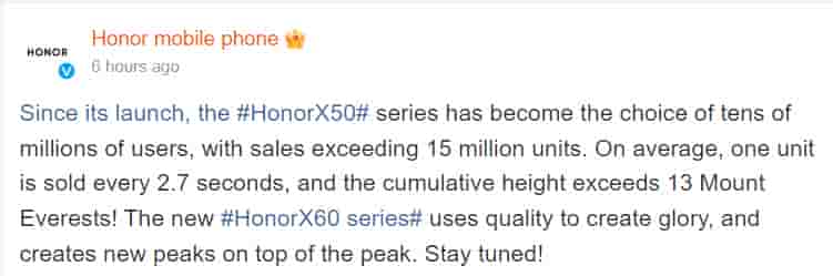 Coming to the X50 series, Honor has shared that after the X50 series release in July 2023, around 15 million units of the device was sold out in 15 months, which means on average, each 2.7 seconds, one unit was sold. Notably, the sold units would add up to 13 Mount Everest as per the company, even with the slim thickness of 7.98 mm.