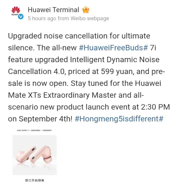 As mentioned, the Huawei Mate XTs Extraordinary Master and All-Scenario New Product Launch Event has been scheduled in China and it will be taking place on the 4th of September 2025 at 2:30 PM local time. This upcoming event in addition to unveiling the Mate XTs Ultimate Design flagship smartphone, will also bring out the FreeBuds 7i earbuds and MateTV smart screen too for the Chinese customers, and ahead of it, the pre-sale for Huawei’s Mate XTs Ultimate Design and FreeBuds 7i devices has gone live in the country today (on 28th August 2025). Interested customers will be able to pre-book these two Huawei products now via the Huawei Mall and also through authorized e-commerce platforms.