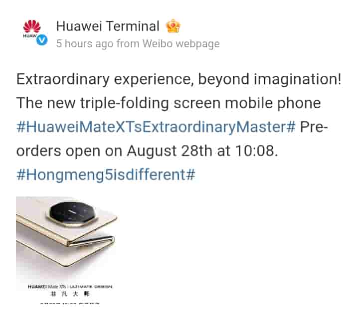 Huawei Mate XTs Ultimate Design, FreeBuds 7i, and MateTV – Launching on 4th September 2025 in China