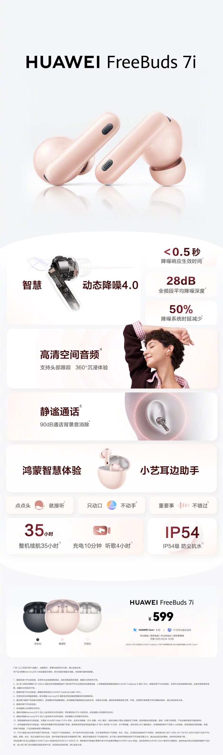 Huawei’s FreeBuds 7i earbuds device features an Intelligent Dynamic Noise Reduction 4.0 system and with which, it is capable of delivering less than 5 seconds accurate response time, 28dB average noise reduction, and 50% noise reduction system latency. For an immersive 360° experience, HD Spatial Audio is also supported on the device.