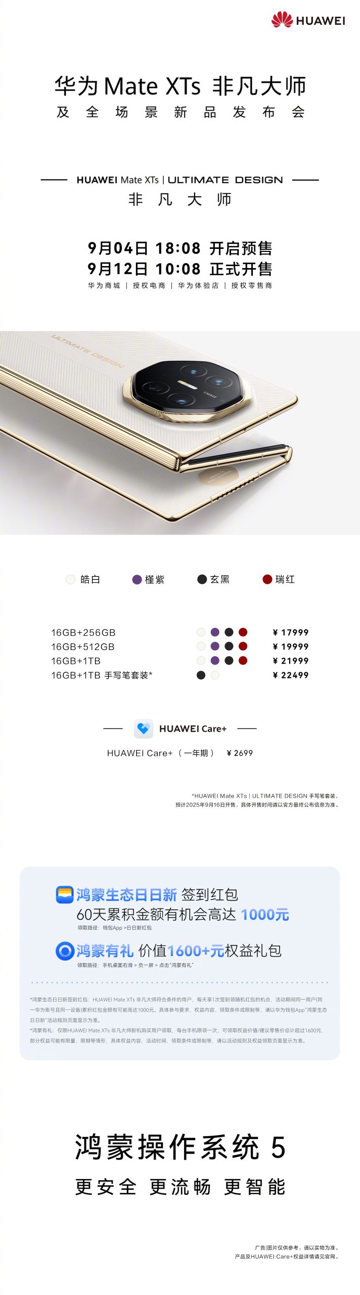 This latest device is already now available for pre-order in China, and its official sale will be on the 12th of September 2025. White, Purple, Black, and Red color variants are available for the device, and its 16GB/256GB, 16GB/512GB, and 16GB/1TB storage variants are priced at CNY 17999, CNY 19999, and CNY 21999 respectively. A 16GB/1TB Stylus Set variant is also available and customers can get it for CNY 22499. Interested customers can also purchase the Huawei Care+ for CNY 2699.
