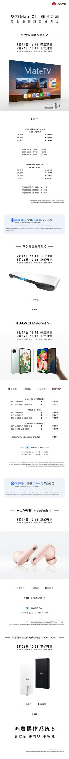 Huawei Mate XTs Tri-Fold Smartphone, MateTV Smart Screen, MatePad Mini Tablet, FreeBuds 7i Earbuds, and More Officially Unveiled in China: Pre-Order Already Begun