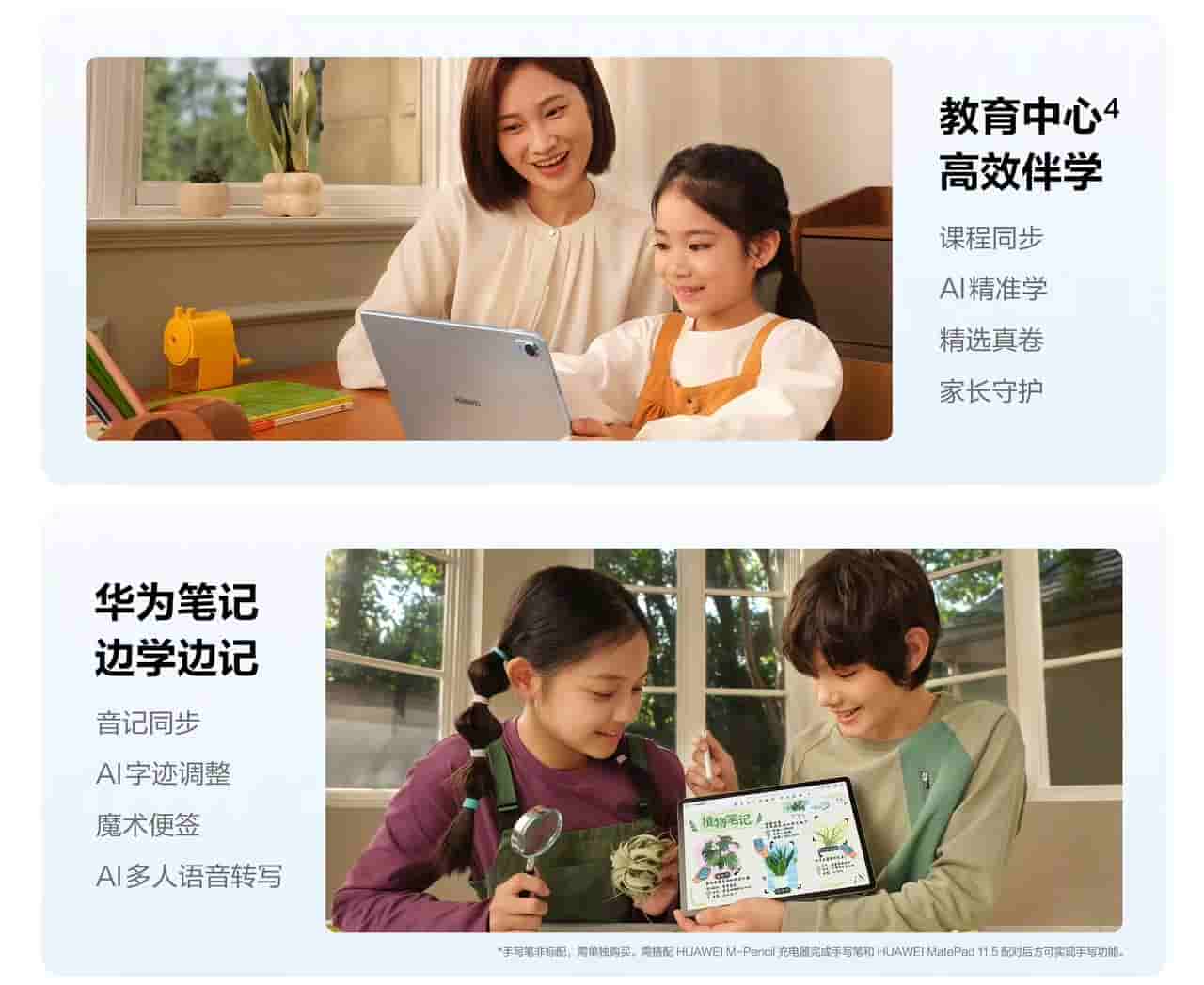It runs on HarmonyOS 4.2 and offers features like the SuperHub File transfer tool, floating multiple windows, multi-screen collaboration, and an upgraded Notes app. Education Center feature is also available that includes features like- Course synchronization, AI precision science, selected authentic scrolls, and parental protection. The tablet packs up a 13MP rear main camera and an 8MP front camera.