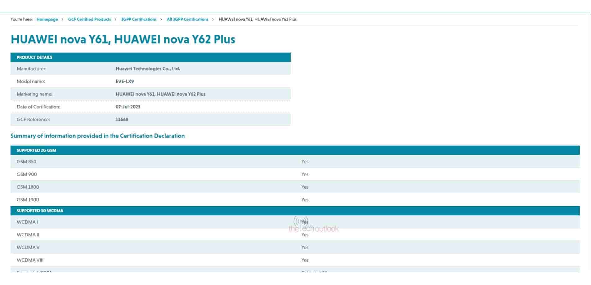 This is because our team has now spotted HUAWEI Nova Y62 Plus on the GCF certification website with model number EVE-LX9. This is the first time that this smartphone has been spotted on any certification platform.