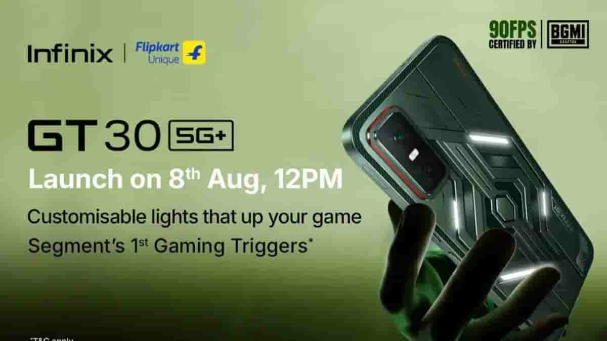 Infinix GT 30 5G+ will be making its official debut in India on 8th August at 12 PM. The company has already teased some key details about this upcoming smartphone via Flipkart’s microsite, while a few more details were promised to be revealed in the next few days.