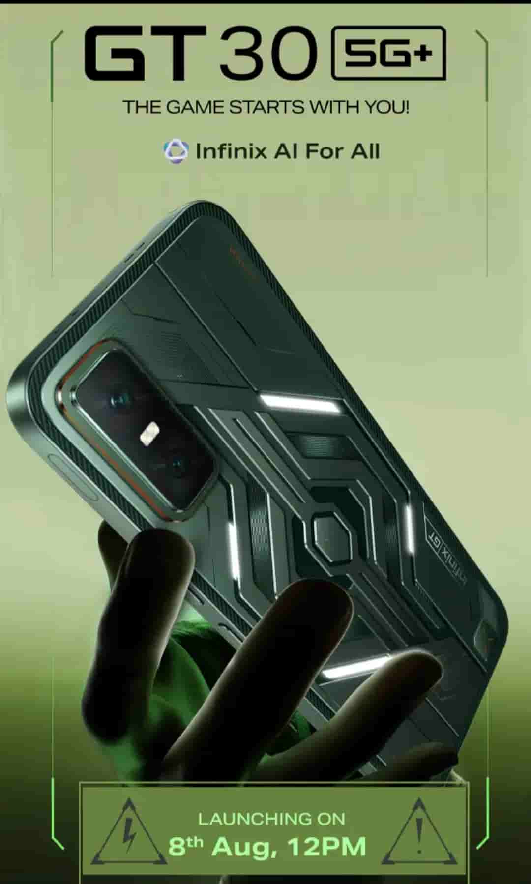 Infinix has recently teased the launch of the Infinix GT 30 5G+ smartphone in India, while the microsite for the device was also made live on Flipkart. Today, the brand has officially confirmed that the device will make its debut in India on 8th August at 12 PM.