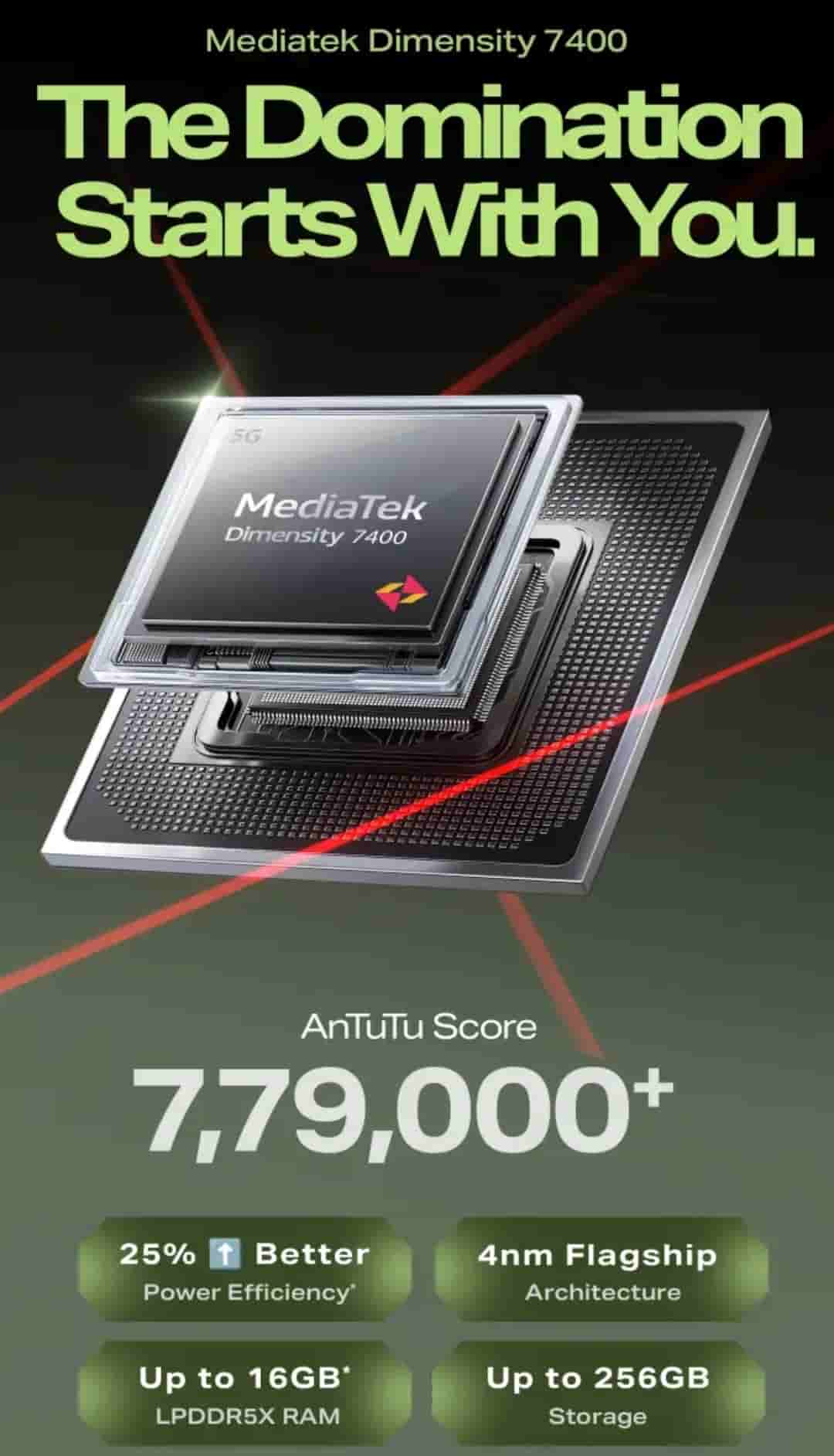 It will arrive with Segment’s 1st GT Shoulder Triggers, and users can customize the triggers for in-game controls, camera controls, quick app launches, and video playback. The device will be powered by MediaTek Dimensity 7400 SoC that arrives with 4nm flagship architecture and 7,79,000+ AnTuTu score. The chipset is said to offer 25% better power efficiency while it will be paired with up to 16GB (8GB+ 8GB extended RAM) LPDDR5X RAM and up to 256GB storage.