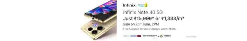 The Infinix Note 40 5G smartphone has been priced at Rs 19,999 for the sole variant of 8GB+256GB. The phone will be available via Flipkart to the buyers starting from 26th June at 2 PM. Buyers can get a Rs. 2000 Instant discount with SBI, HDFC, and Axis Bank cards, a Rs. 2000 additional discount on exchange and a free Infinix MagPad worth Rs. 1999 in the box for a limited period.