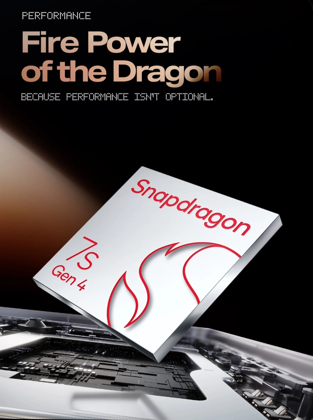 The smartphone will be powered by the Snapdragon 7s Gen 4 SoC and arrive with 1Mn+ AnTuTu score. The chipset offers up to 78% faster performance than the Note 50 series, 75% improved CPU performance, 210% faster GPU performance and 25% smoother performance during multitasking.