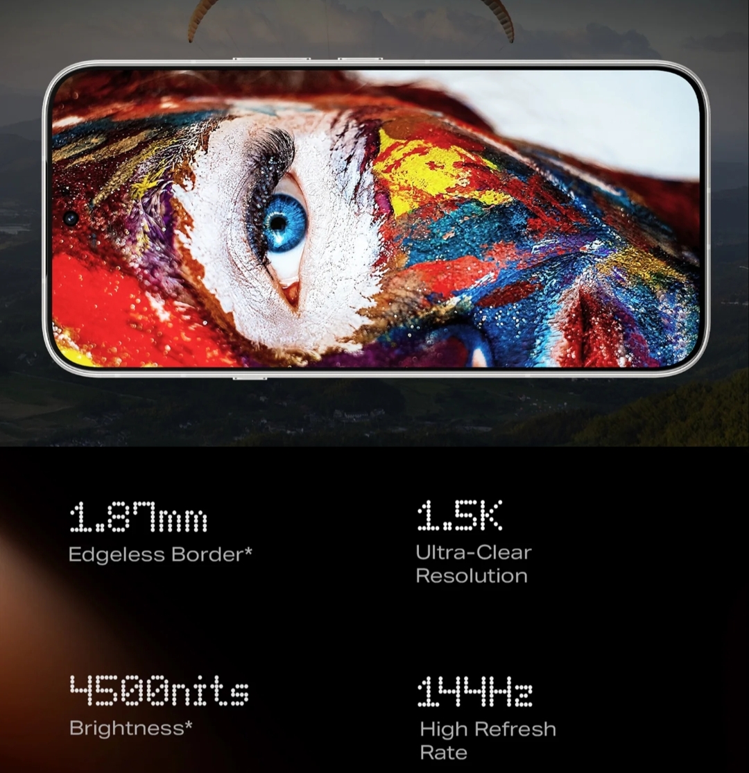 The display of this device offers 1.5K ultra-clear resolution, 4500 nits brightness and 144Hz high refresh rate, while it comes with a 1.87mm edgeless border. The display provides flicker-free clarity and motion sickness relief. It is protected with Corning Gorilla Glass 7i and is TUV Blue Light Eye Care certified.
