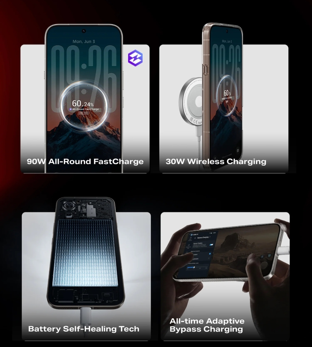 The smartphone is equipped with 360-degree dual stereo speakers tuned by JBL. It is backed by a 6500 mAh battery that offers up to 34 hours of non-stop video playback and up to 22 hours of non-stop outdoor navigation. It boasts 6 years of battery endurance and battery self-healing tech. The device supports 90W FastCharge, 30W wireless charging and all-time adaptive bypass charging.