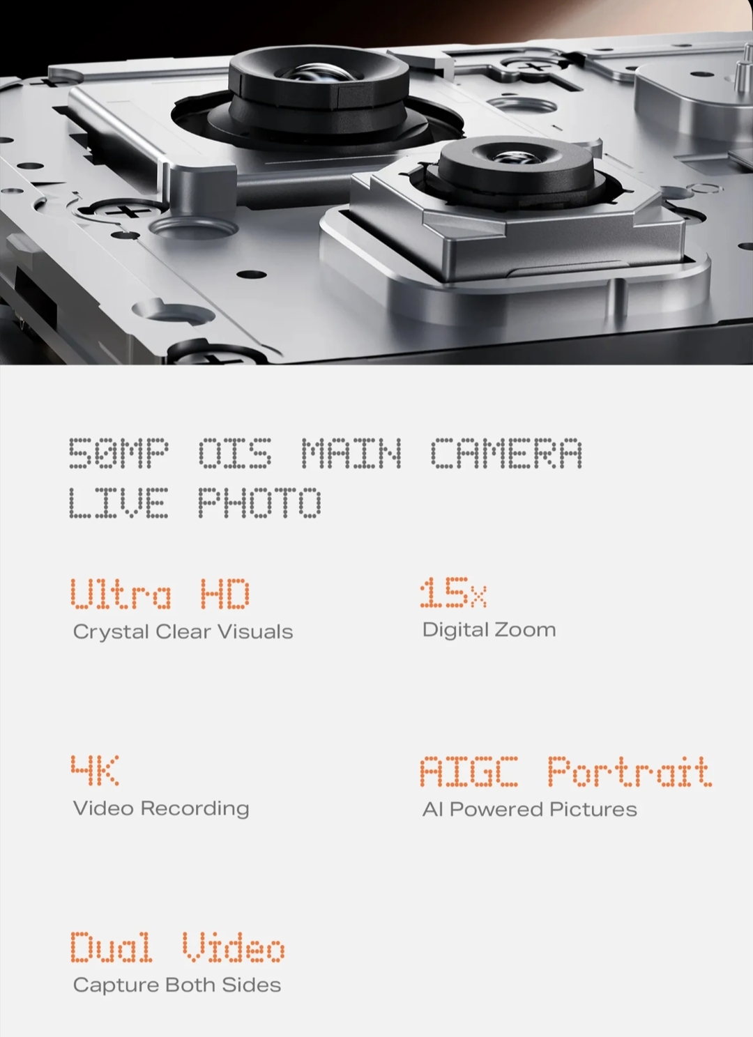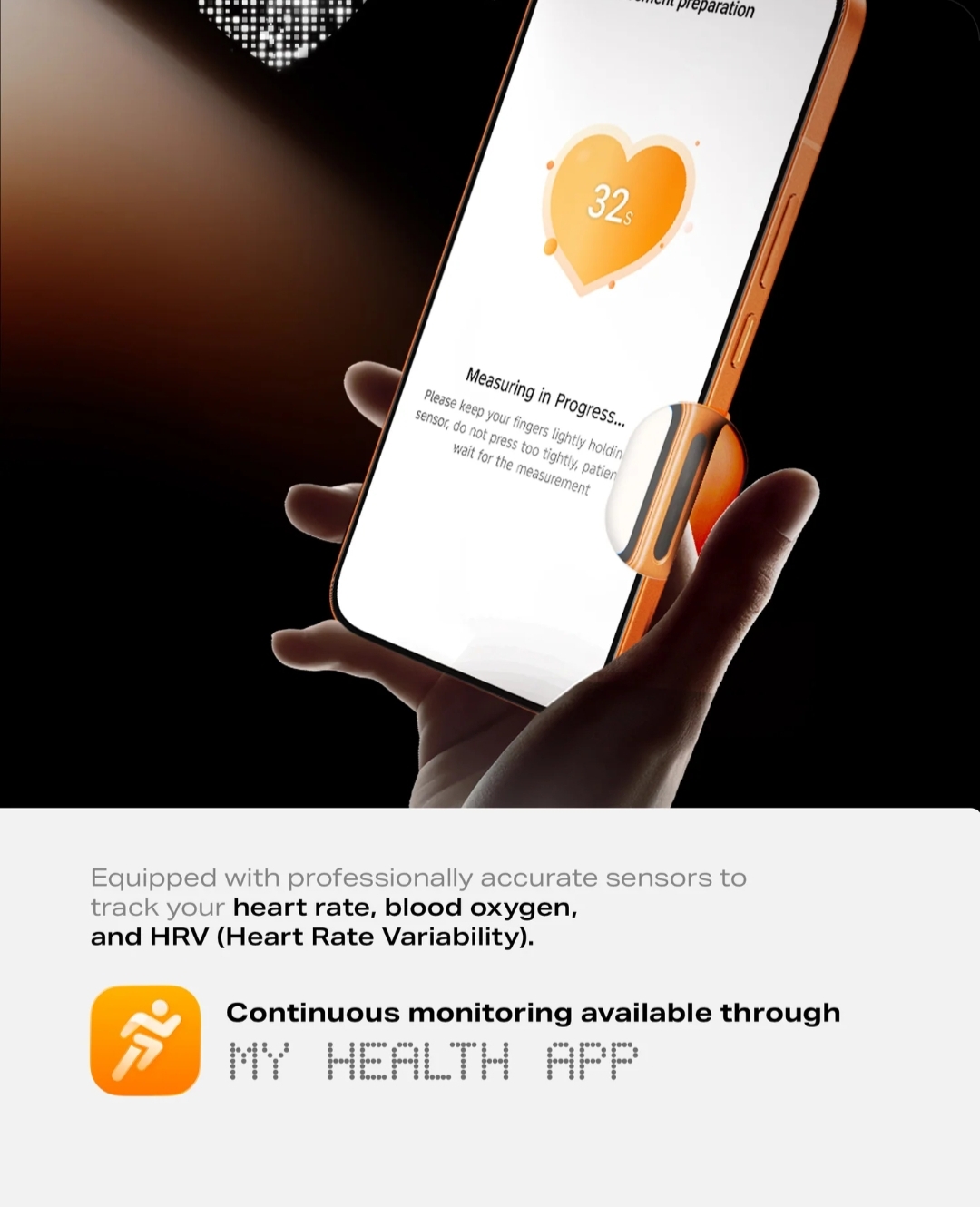 It sports professionally accurate sensors to track your heart rate, blood oxygen, and HRV (Heart Rate Variability). Continuous monitoring is available through My Health App. The device packs a 50MP Ultra HD OIS main camera that supports 15x digital zoom, 4K video recording, and AIGC Portrait. It supports dual video capturing from both sides.